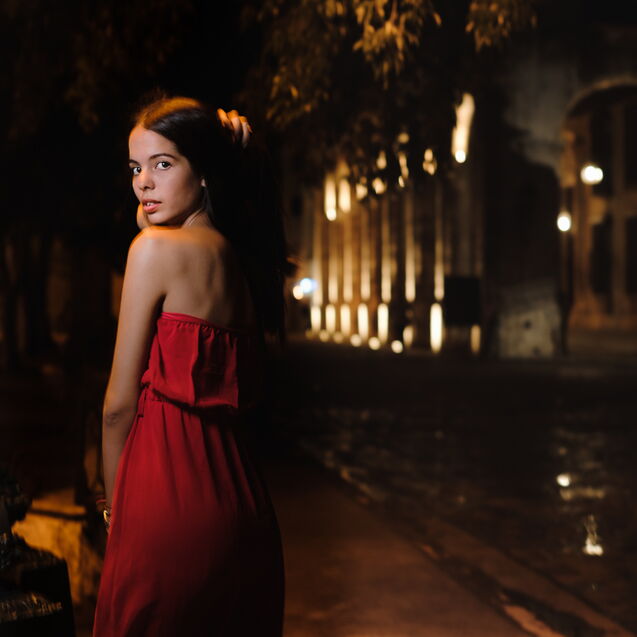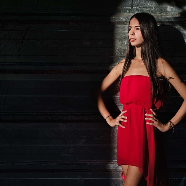 ¶ Wie in vielen südlichen Ländern geht auch in Kuba die Sonne sehr schnell unter. Je schräger der Winkel, desto dramatischer … ein Spotlight im Studio ist dagegen geradezu eine »weiche Softbox«. Jedenfalls war diese Lichtstimmung für Grettell im ihrem rotem Kleid wie gemacht, herrlich!