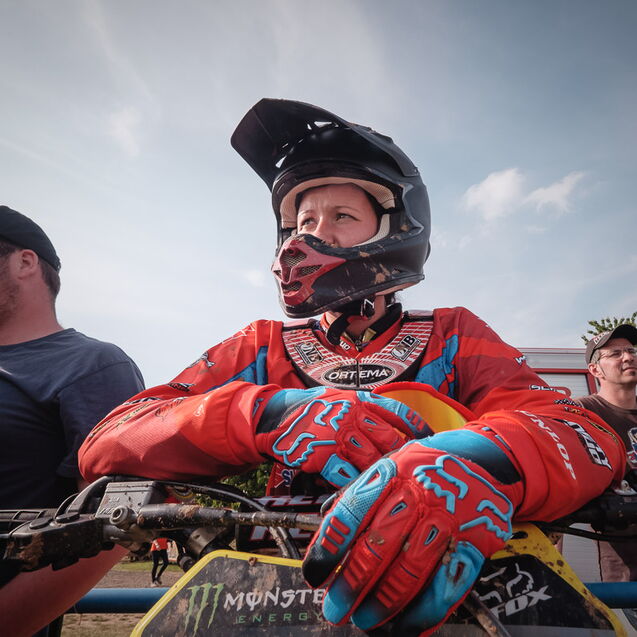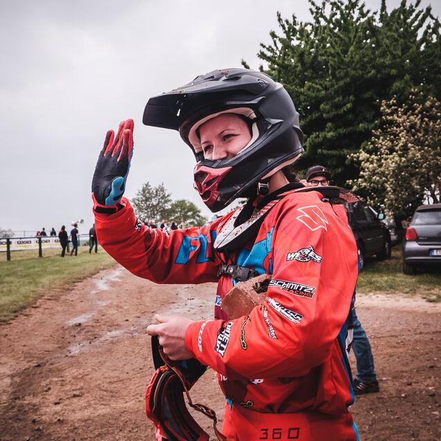 ¶ Zurück zu Selina: sie ist erst relativ spät zum MX-Sport gekommen und es war ihr erster größerer Wettbewerb. Entsprechend grundnervös war sie, als ich frühmorgens am Gelände ankam. – Verabredet hatten wir so eine Art Reportage über den Tag, – »ihren Tag!«. Denn MX ist nicht gerade ein grundsätzlich unfallfreier Sport … Das Wichtigste war deshalb erst einmal ohne Schrammen ankommen!